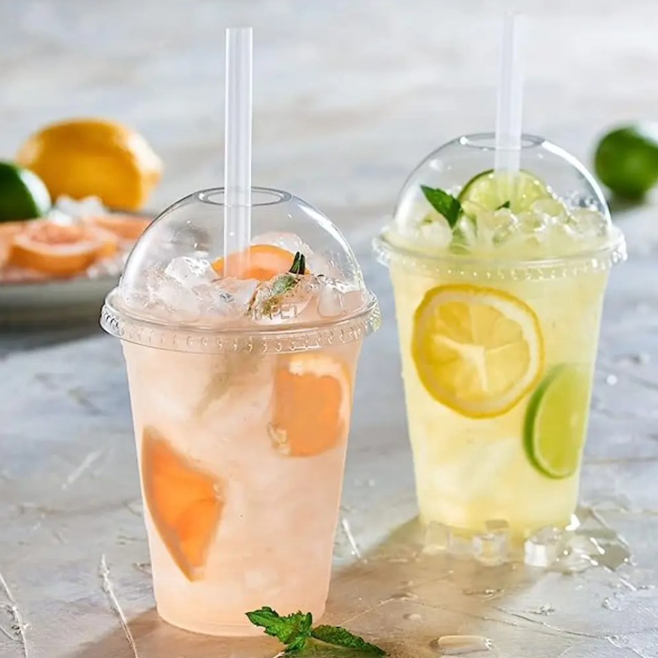 Vasos transparentes de 500 ml con tapa domo antiderrame, resistentes y aptos para alimentos. Su cierre seguro evita fugas, ideales para postres, snacks y bebidas. Fáciles de transportar, perfectos para uso en casa, fiestas o negocios.