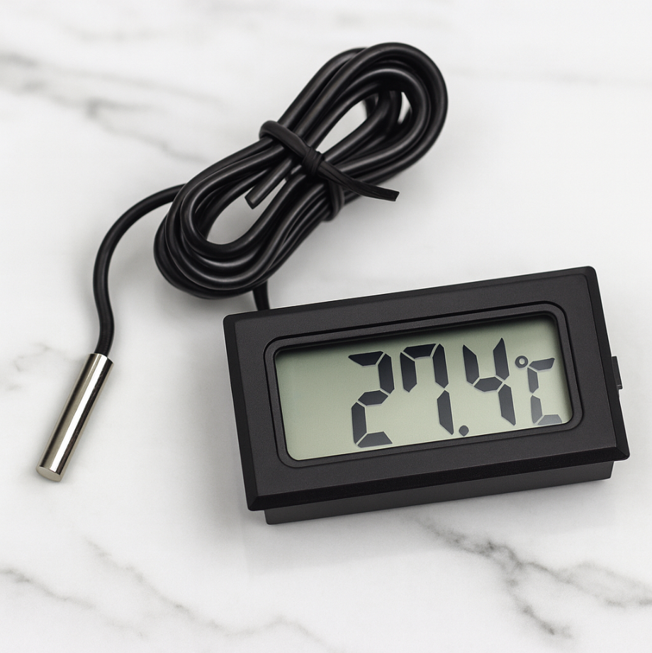 El termómetro digital con sonda de un metro es ideal para medir la temperatura ambiente o el interior de equipos de refrigeración, como frigoríficos, congeladores o neveras. Su pantalla LCD clara y precisa facilita una lectura rápida y confiable.